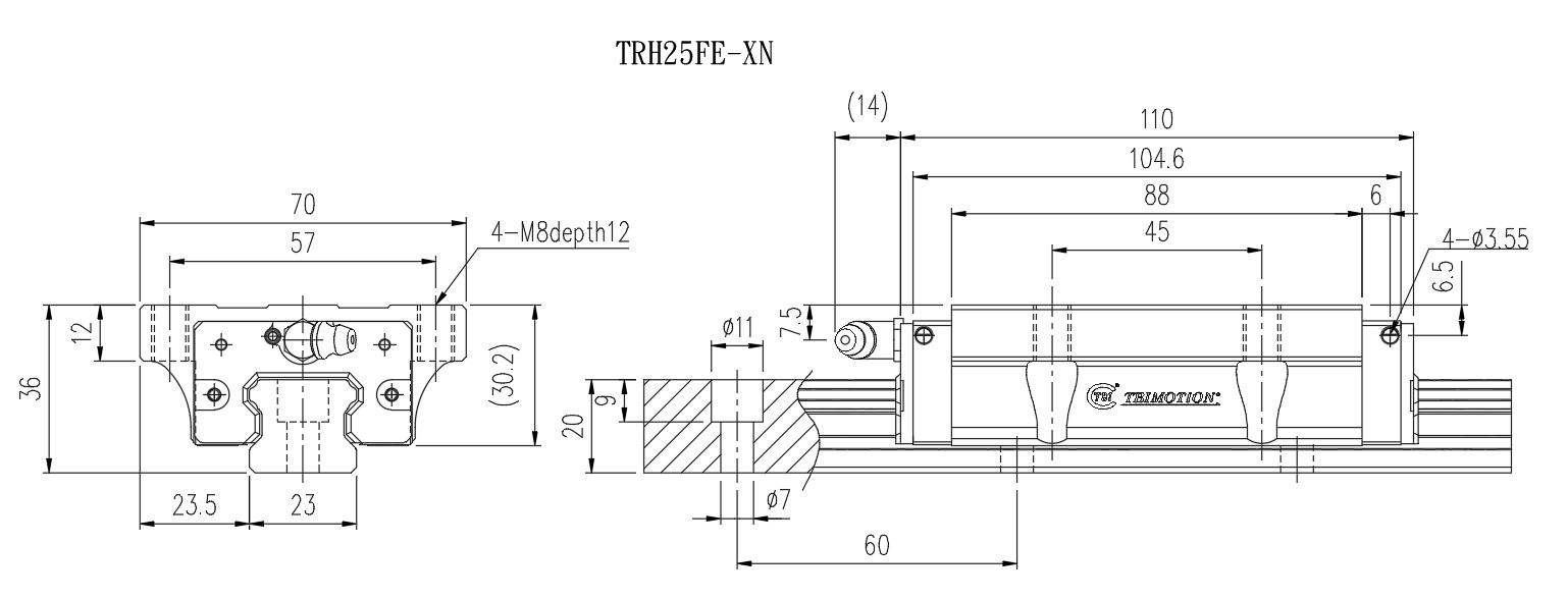 Thông số kỹ thuật Con Trượt Vuông TRH25FE TBI MOTION