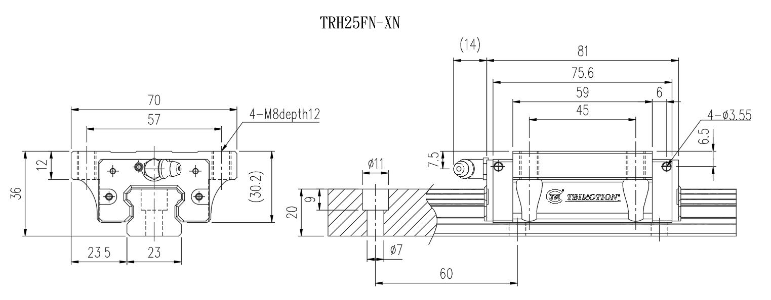 Thông số kỹ thuật Con Trượt Vuông TRH25FN TBI MOTION