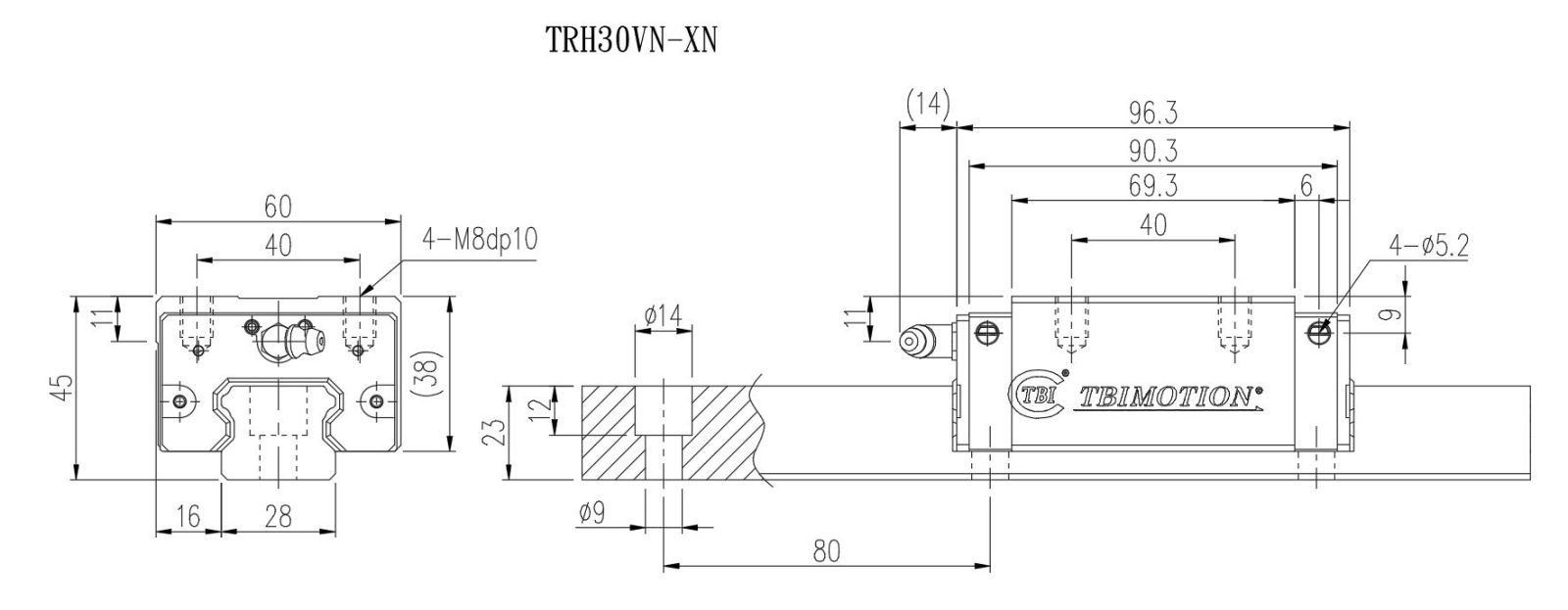 Thông số kỹ thuật Con Trượt Vuông TRH30VN TBI MOTION