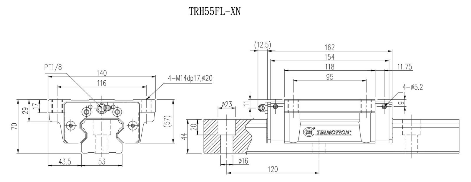 Thông số kỹ thuật Con Trượt Vuông TRH55FL TBI MOTION