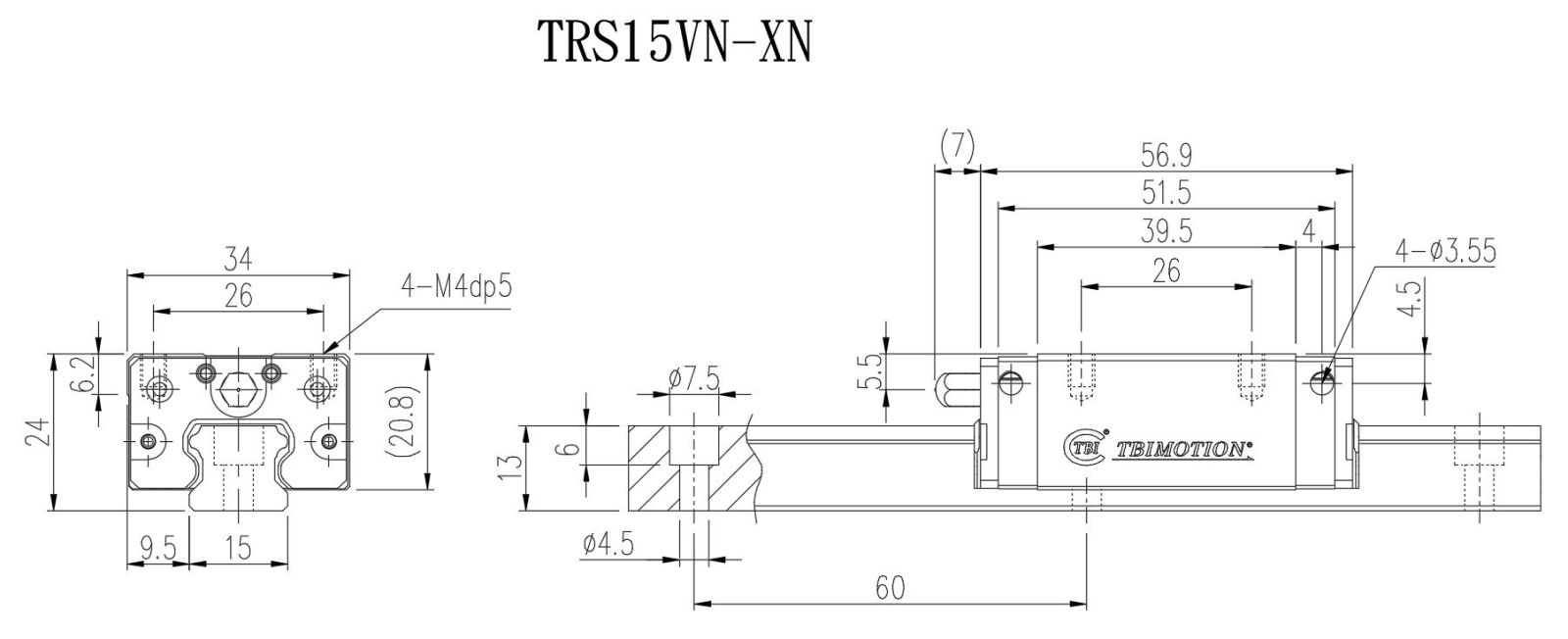Thông số kỹ thuật Con Trượt Vuông TRS15VN TBI MOTION