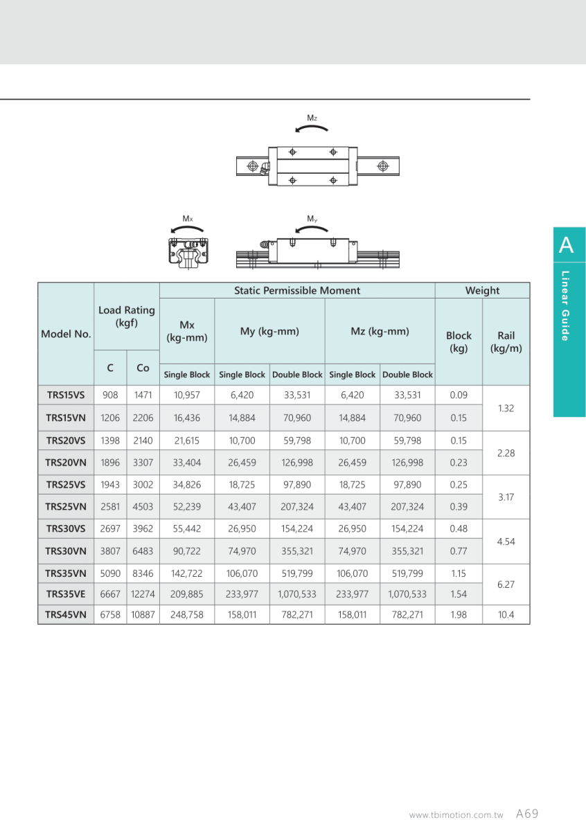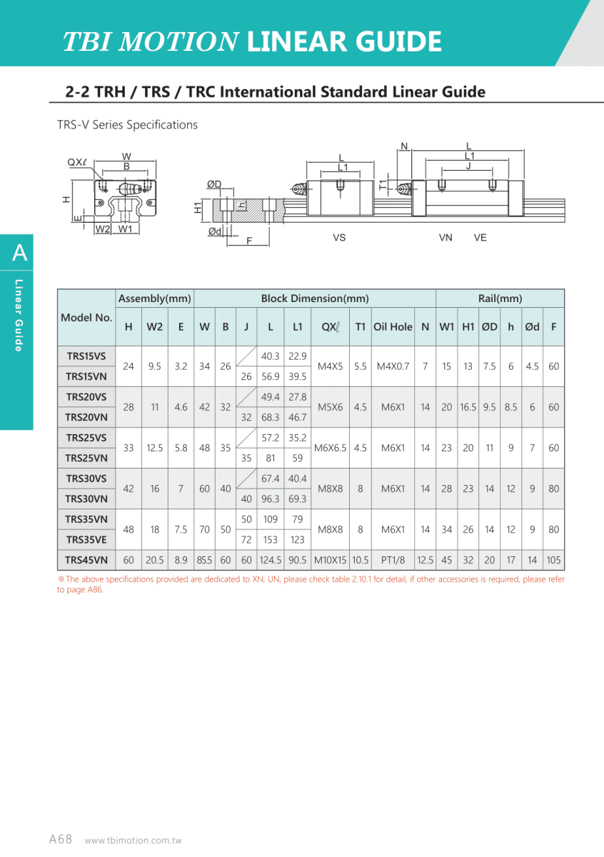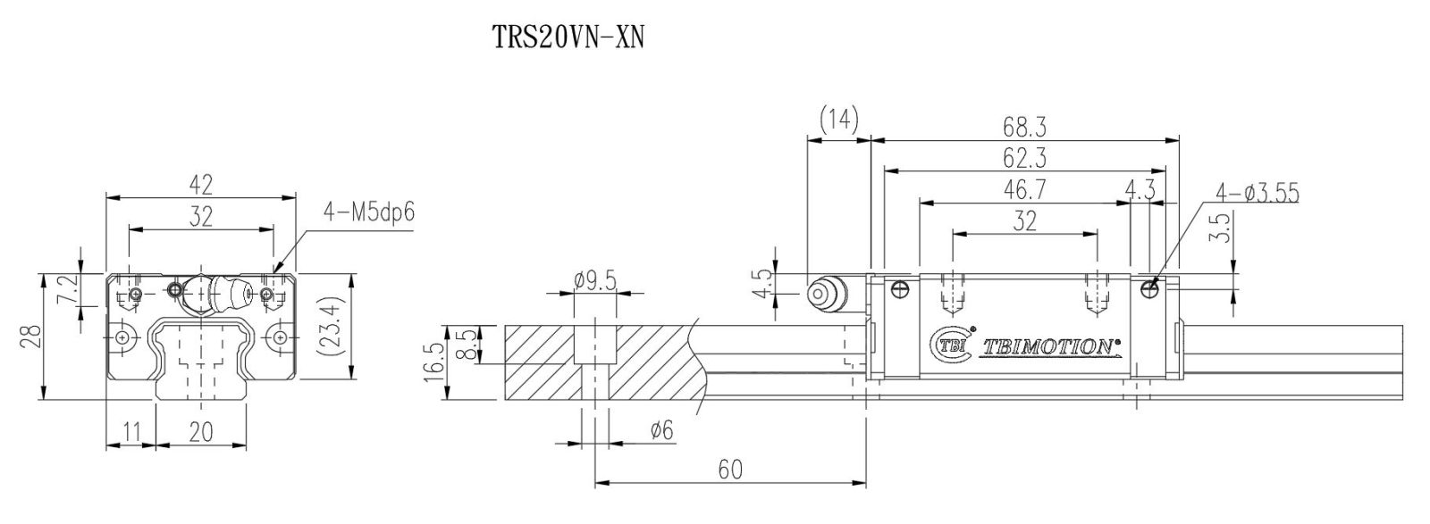 Thông số kỹ thuật Con Trượt Vuông TRS20VN TBI MOTION