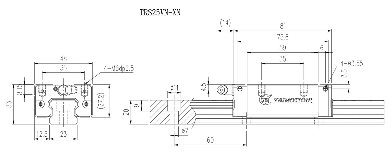 Thông số kỹ thuật Con Trượt Vuông TRS25VN TBI MOTION