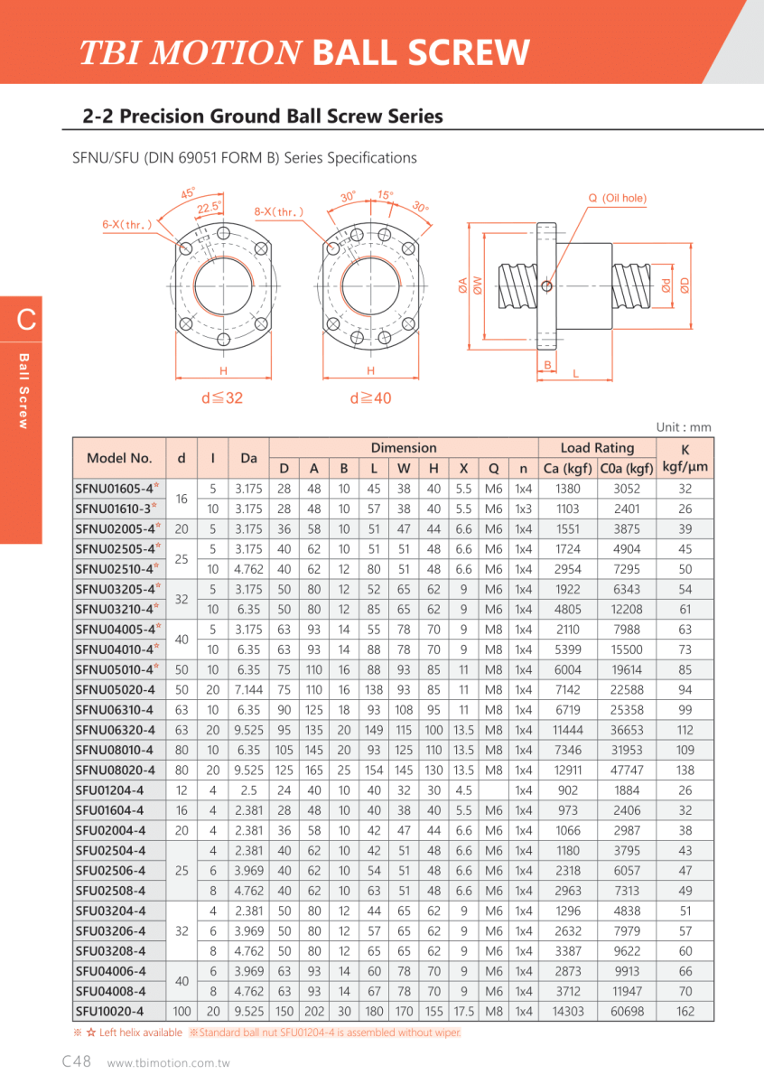 - TBI MOTION áp dụng các tiêu chuẩn kiểm soát chất lượng nghiêm ngặt trong mọi quy trình sản xuất. Khi sử dụng đúng cách và bôi trơn đầy đủ, SFNU01605 đảm bảo vận hành trơn tru, ổn định trong thời gian dài.
