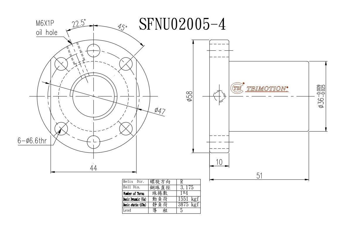 Thông số kỹ thuật Đai Ốc Vitme Bi SFNUR02005T4D TBI MOTION