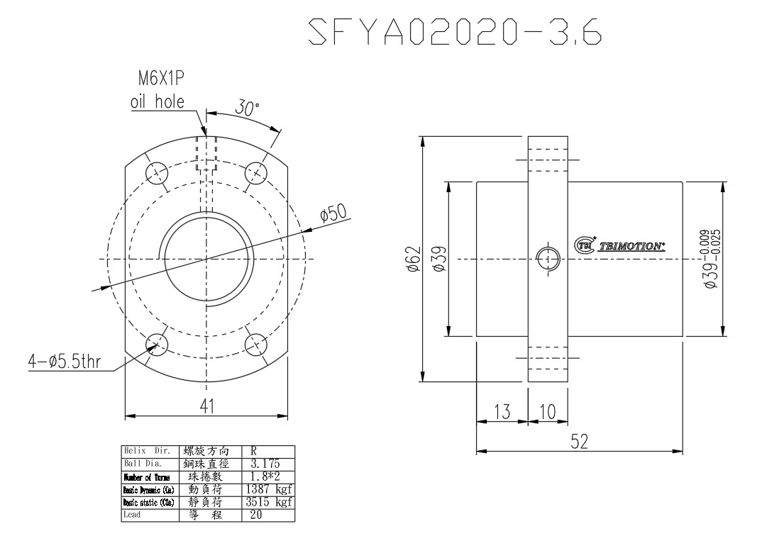 Thông số kỹ thuật Đai Ốc Vitme Bi SFYAR02020A2D TBI MOTION