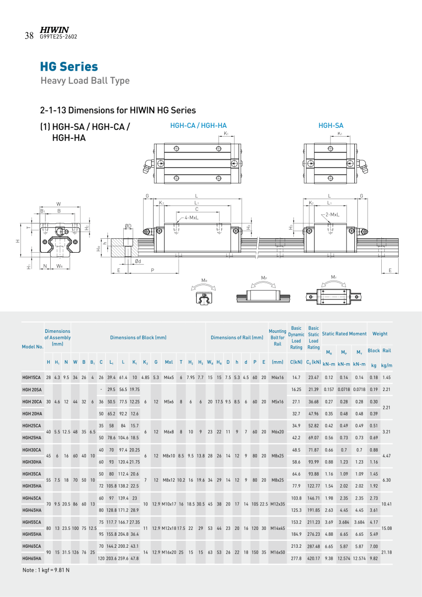 Thanh trượt vuông HIWIN HGR – Dòng HG chịu tải lớn, độ cứng cao